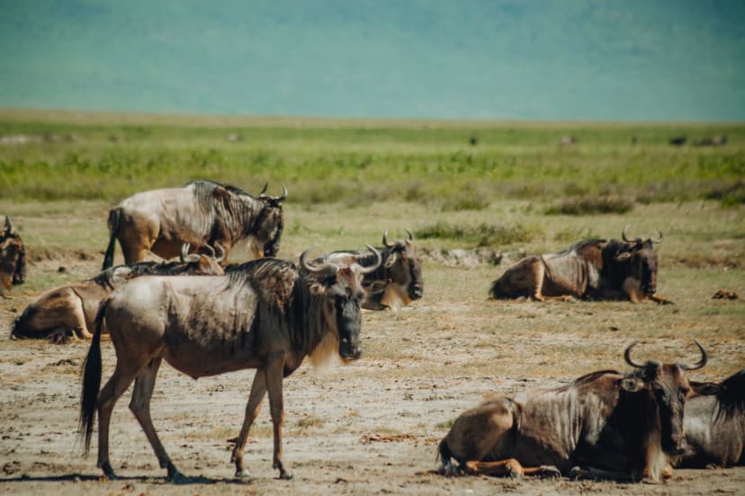 The Great Migration is a yearly event where 1.5 million wildebeest, zebras, gazelles, and other ungulates gather into one enormous herd and traverse the national park in pursuit of greener pastures. This is the largest gathering of large mammals on the planet. Starting from the south and moving clockwise to the north, it peaks with the dramatic crossings of the Grumeti and Mara rivers.